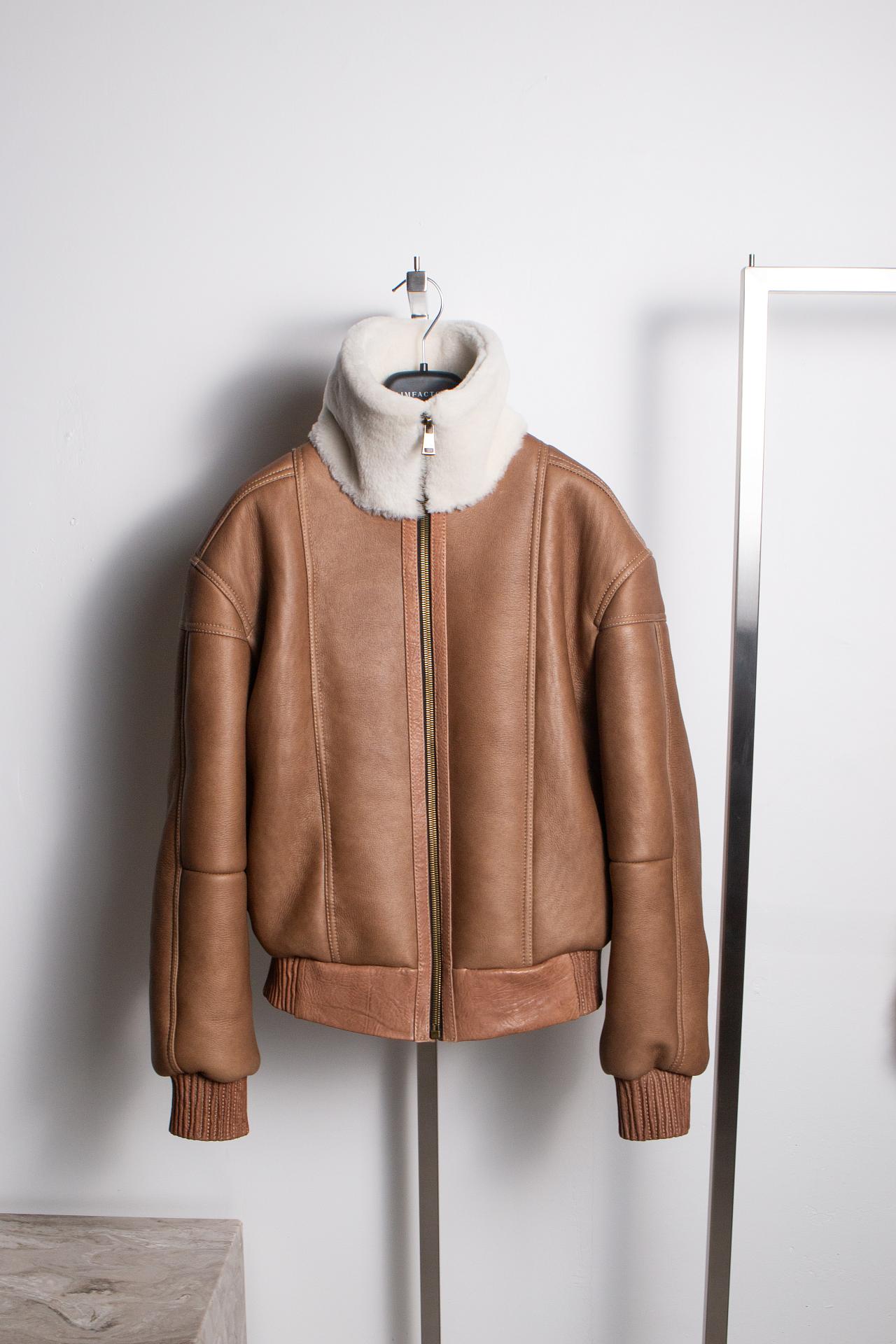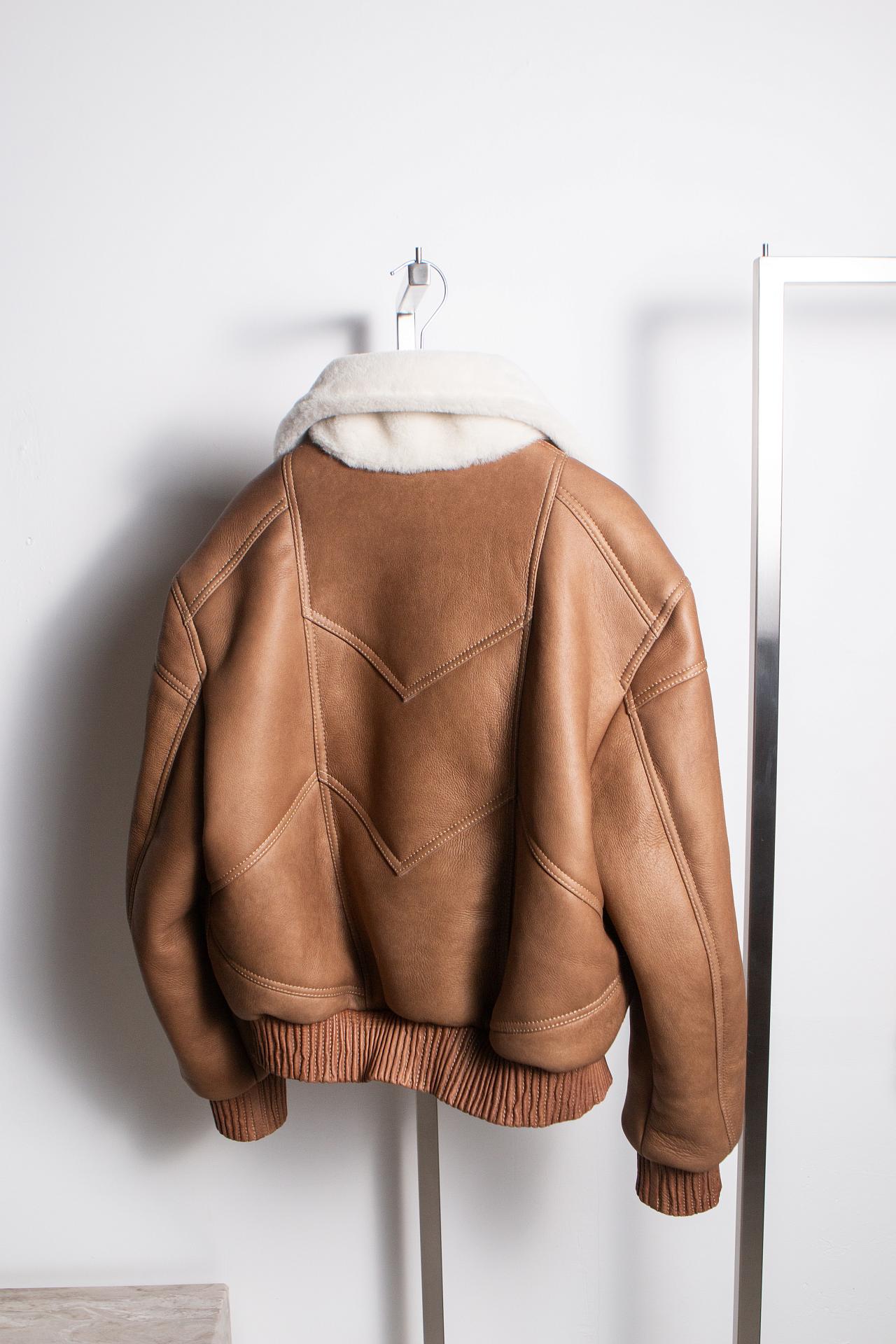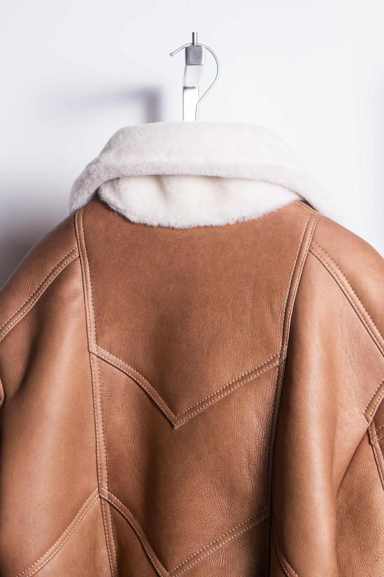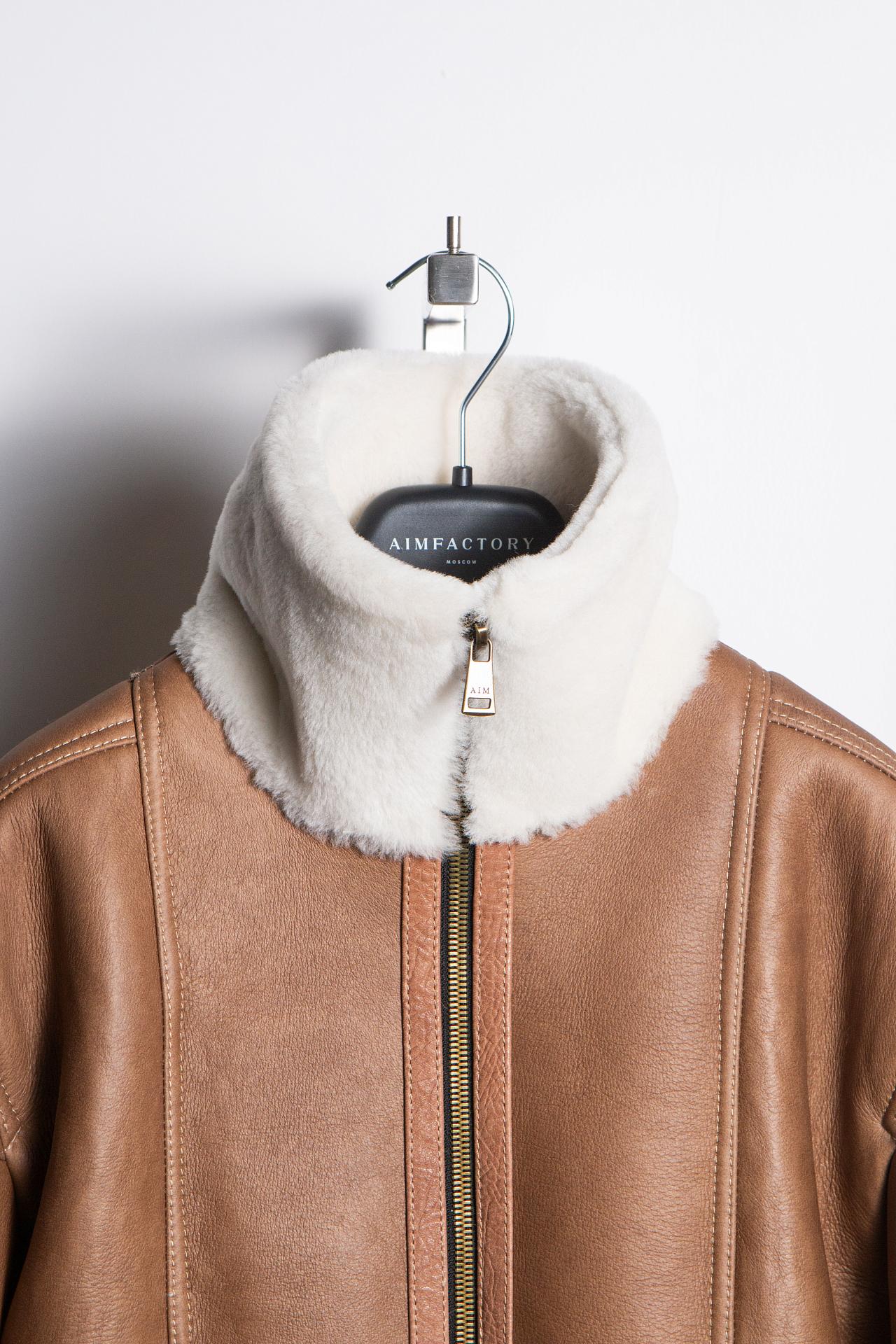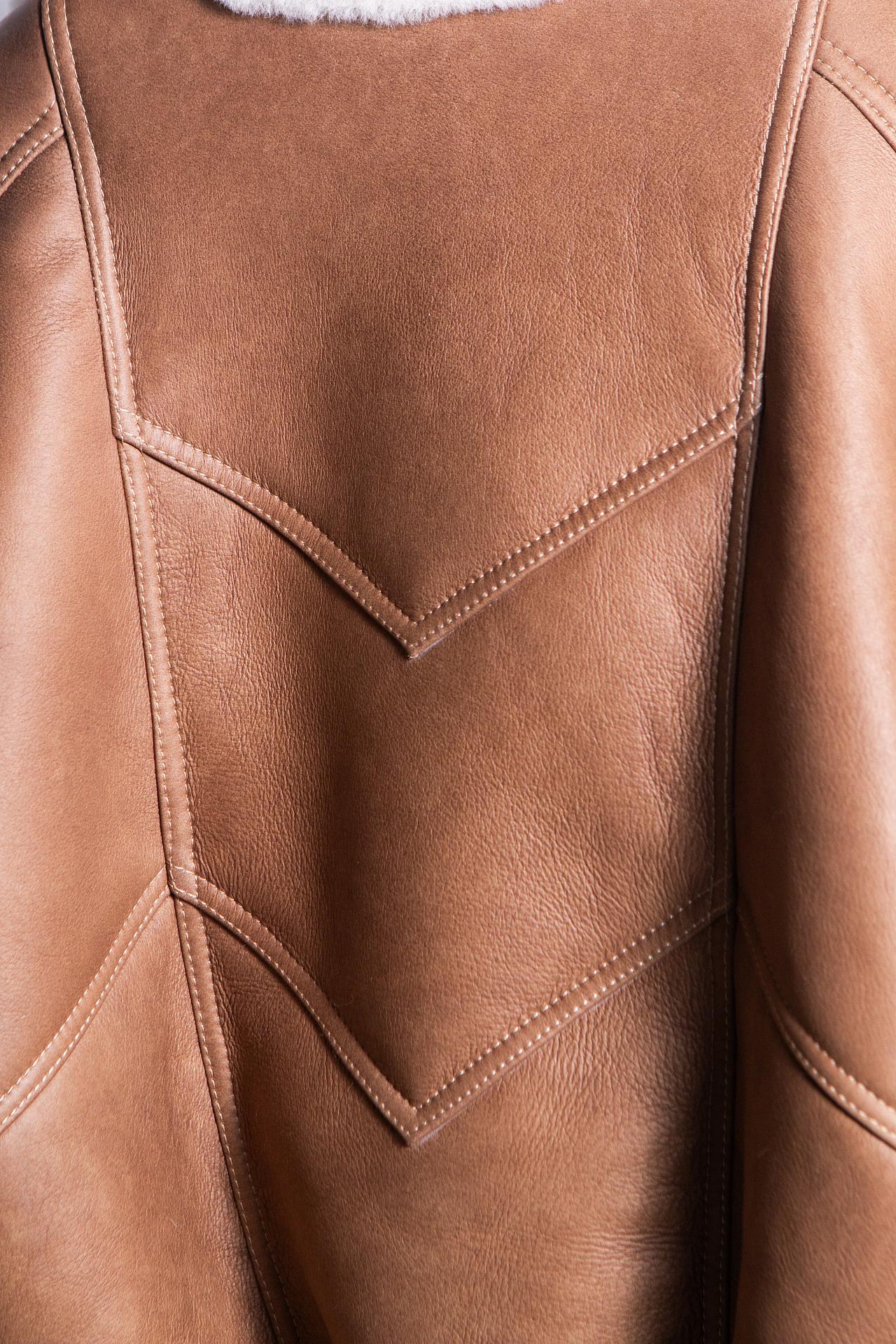 Дублёнка-бомбер выполнена из натуральной овчины Керли. Высокий воротник обеспечивает комфорт и защиту от ветра. Прорезные карманы лаконично вписаны в вертикаль силуэта. Отделка из фактурной кожи премиум-сегмента. Длина изделия 60 см.