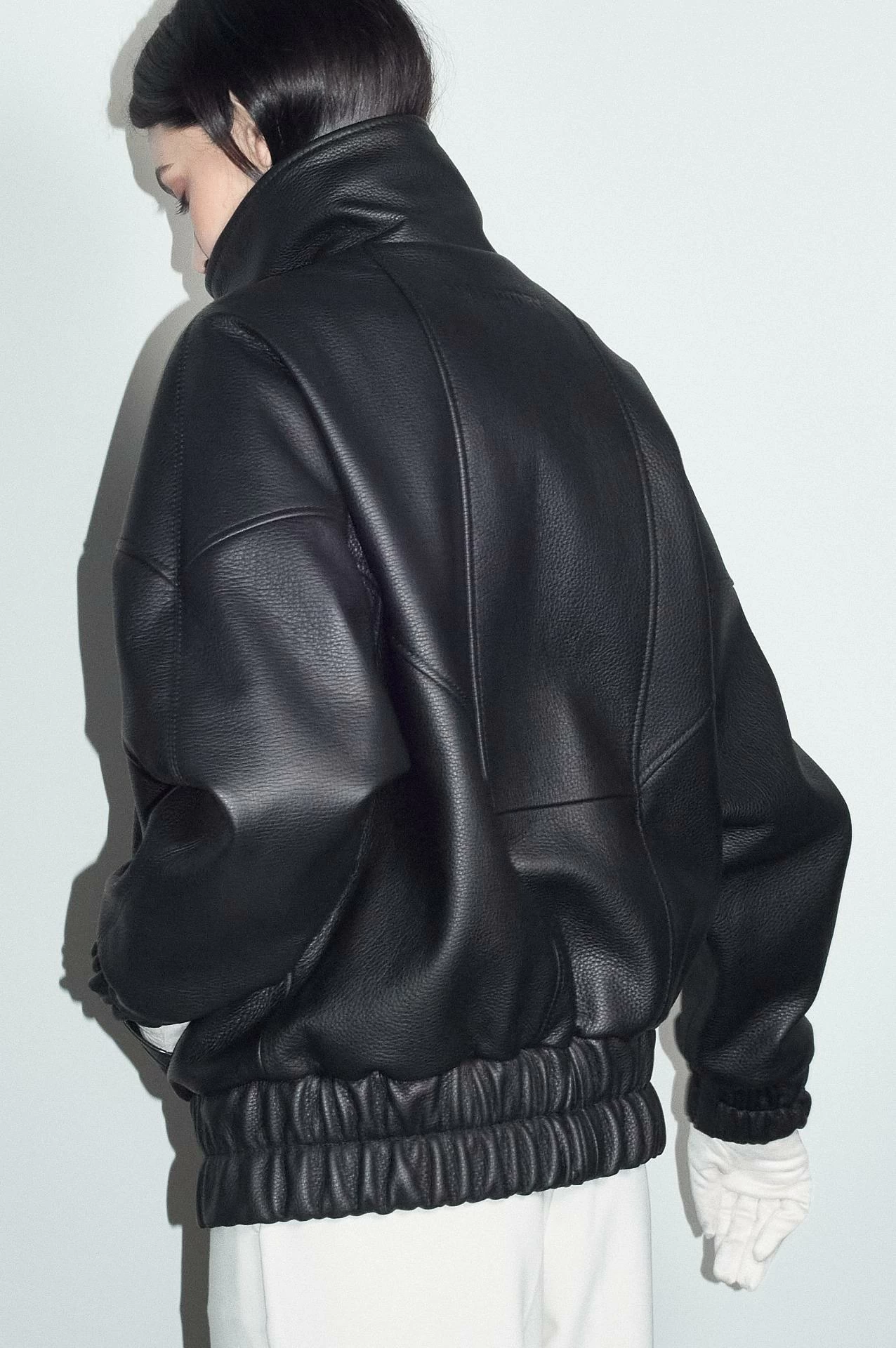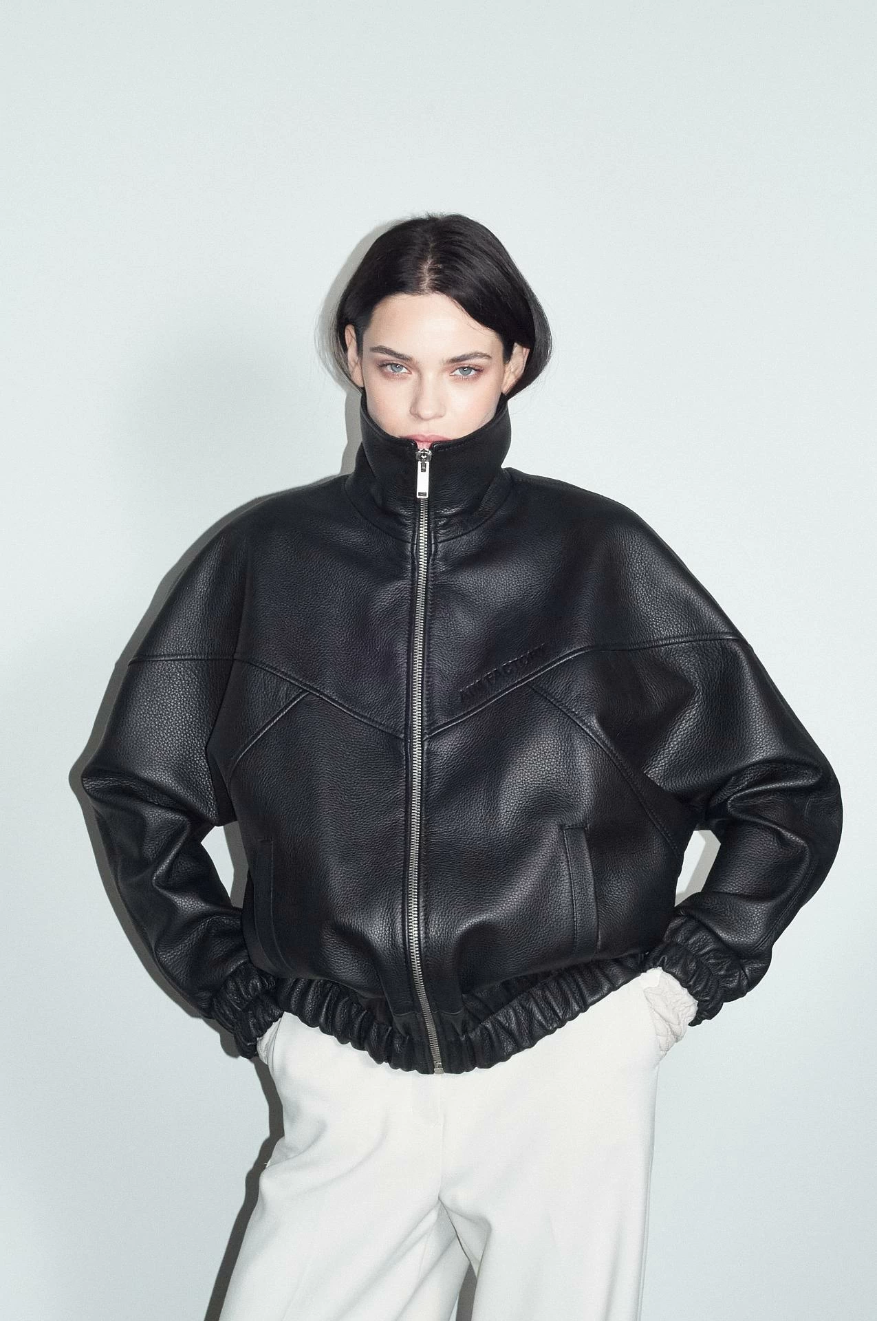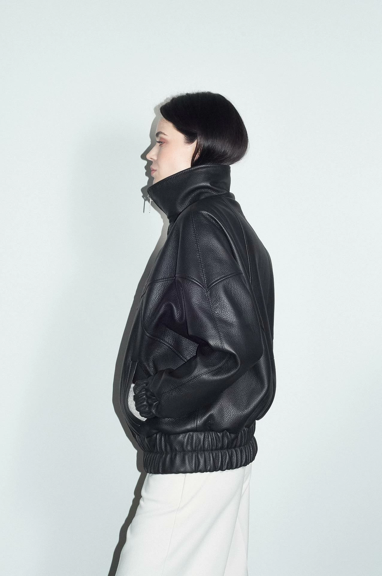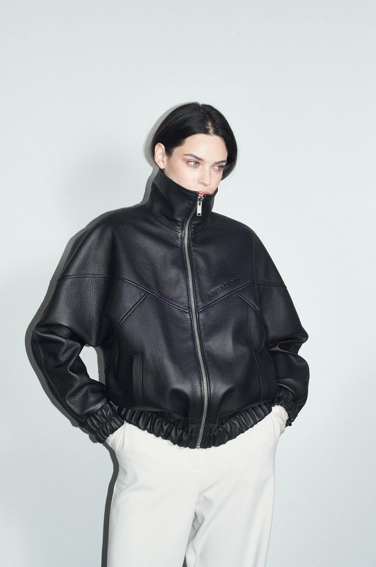 Современная интерпретация классического бомбера в элегантном исполнении в фактурной коже оленя премиум-сегмента. Удлинённый силуэт с застёжкой на молнию и прорезными карманами. Логотип AIMFACTORY, выполненный методом горячего тиснения, акцентно расположен на груди и на спинке. Длина изделия 68 см.