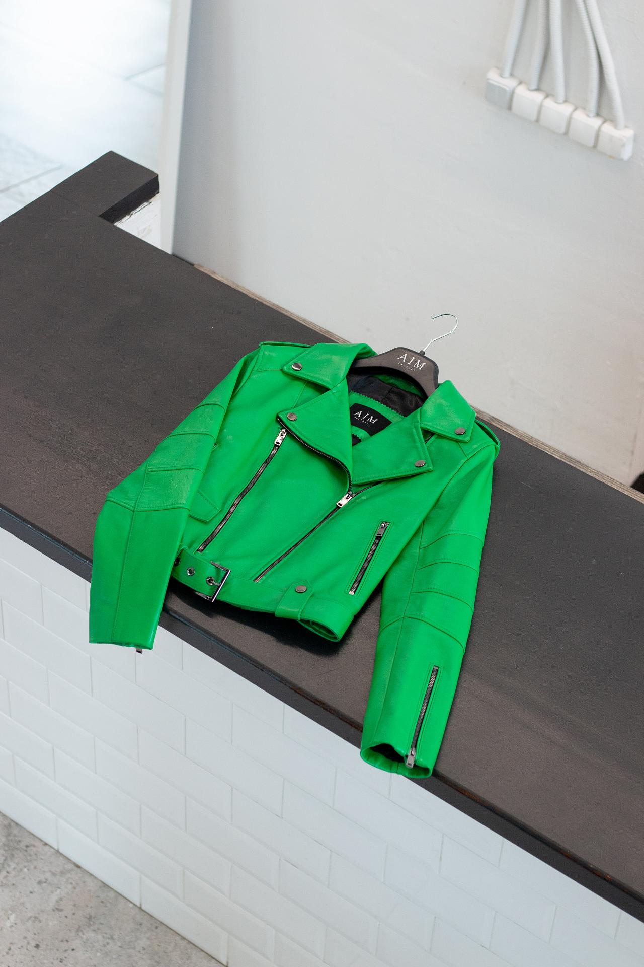 Классическая женская байкерская куртка из гладкой итальянской кожи наппа. Асимметричная застежка-молния. Пояс с пряжкой. Манжеты рукавов с застежками-молниями. Длина изделия: 52 см. Посадка: классическая.