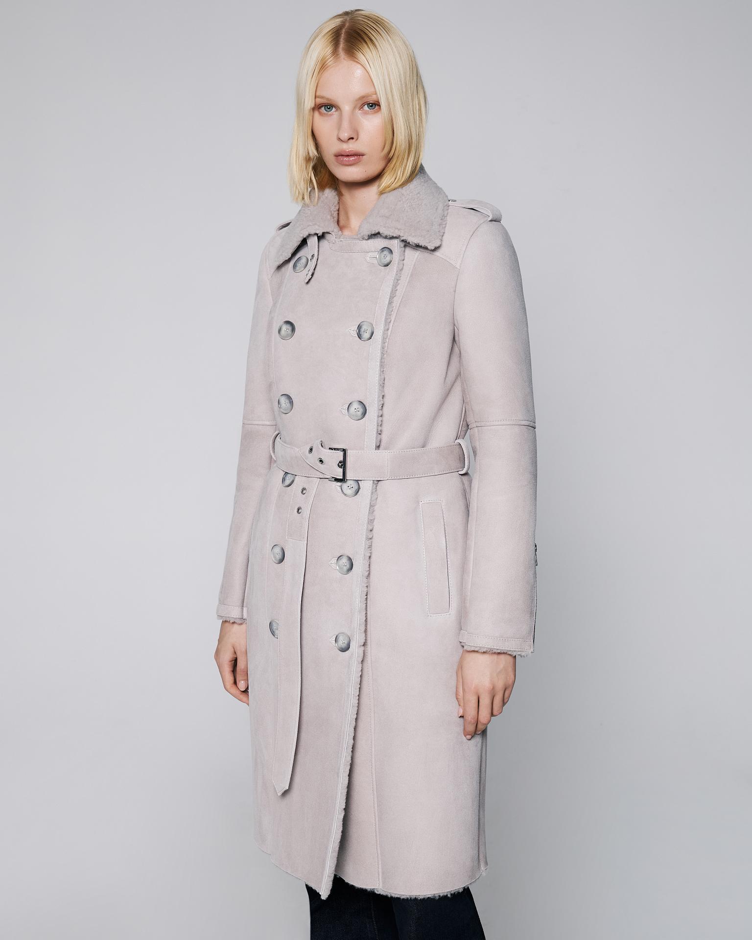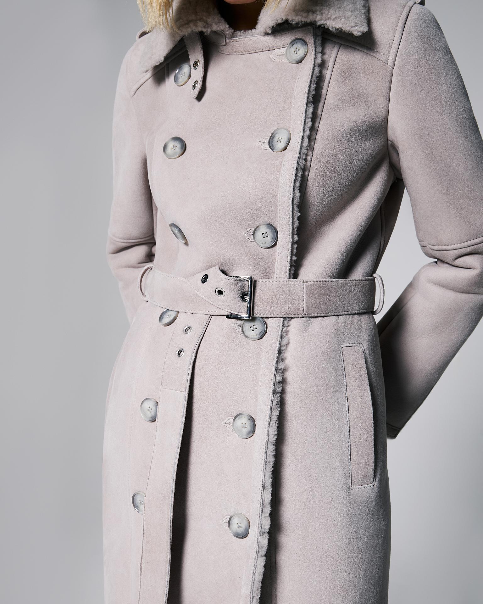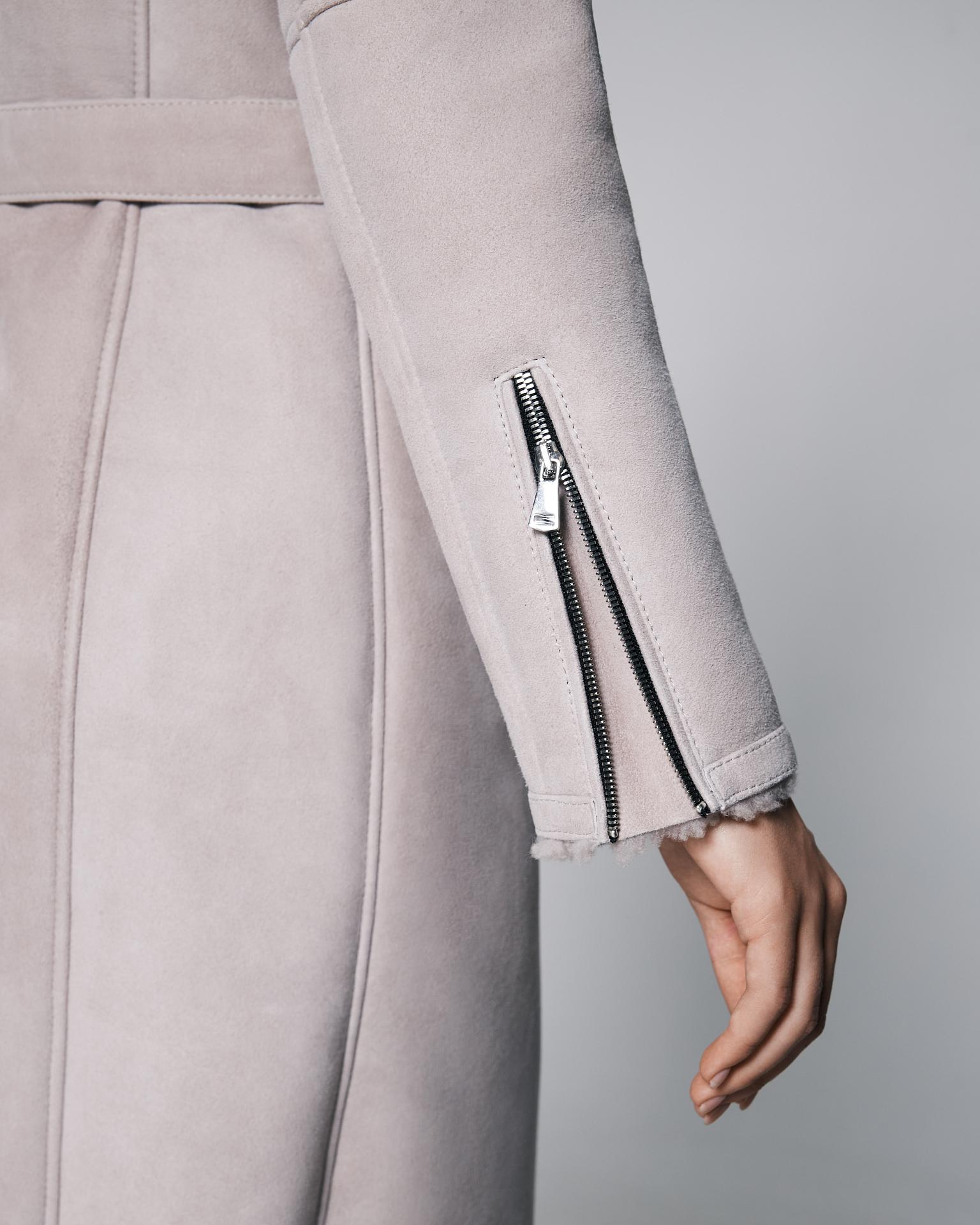Женская дубленка из премиальной итальянской овчины породы Меринос. Удлиненная двубортная модель на пуговицах в тон. Ремень с металлической пряжкой. Молнии на манжетах рукавов. Боковые карманы. Длина изделия 108 см. Посадка классическая, удлиненная.