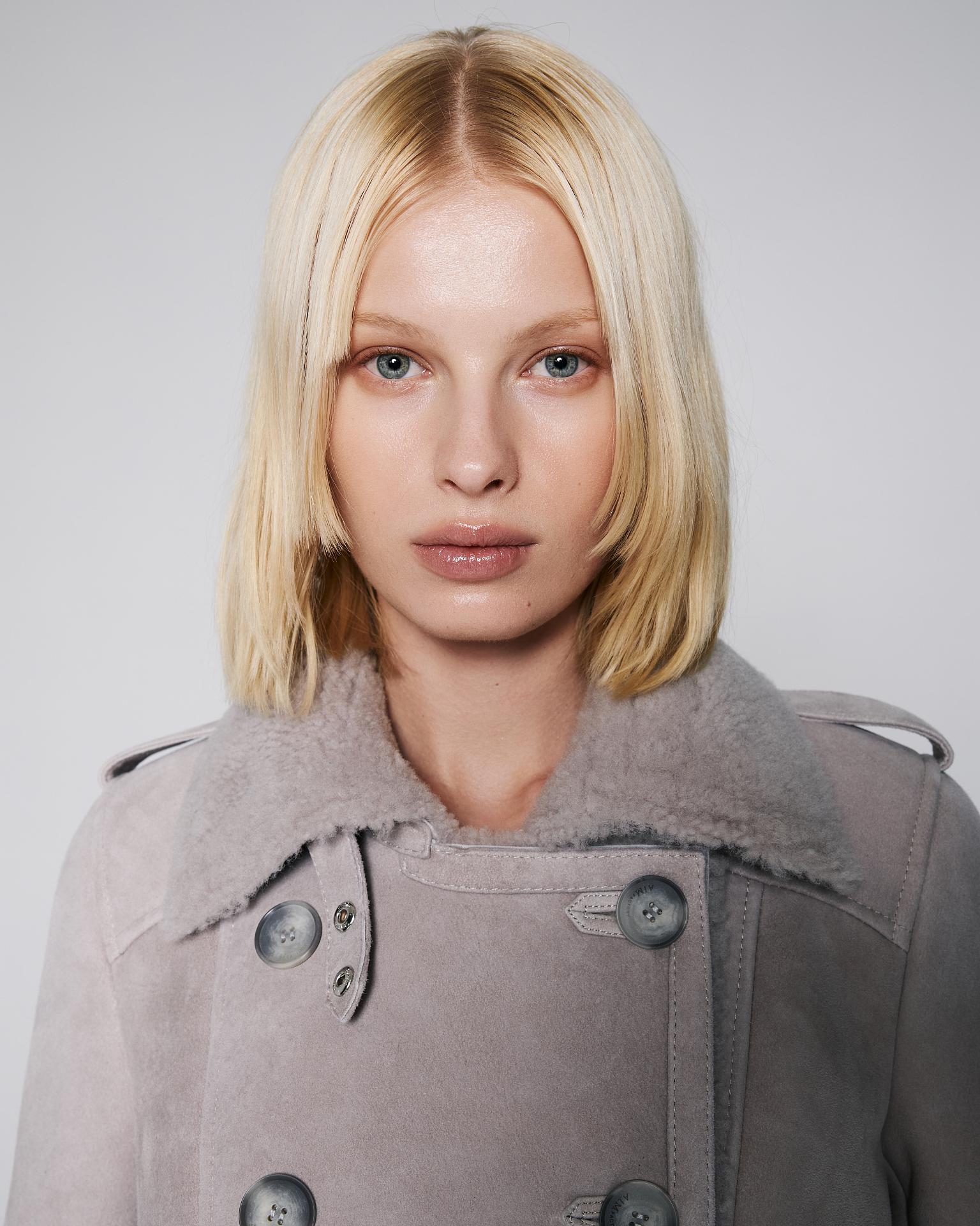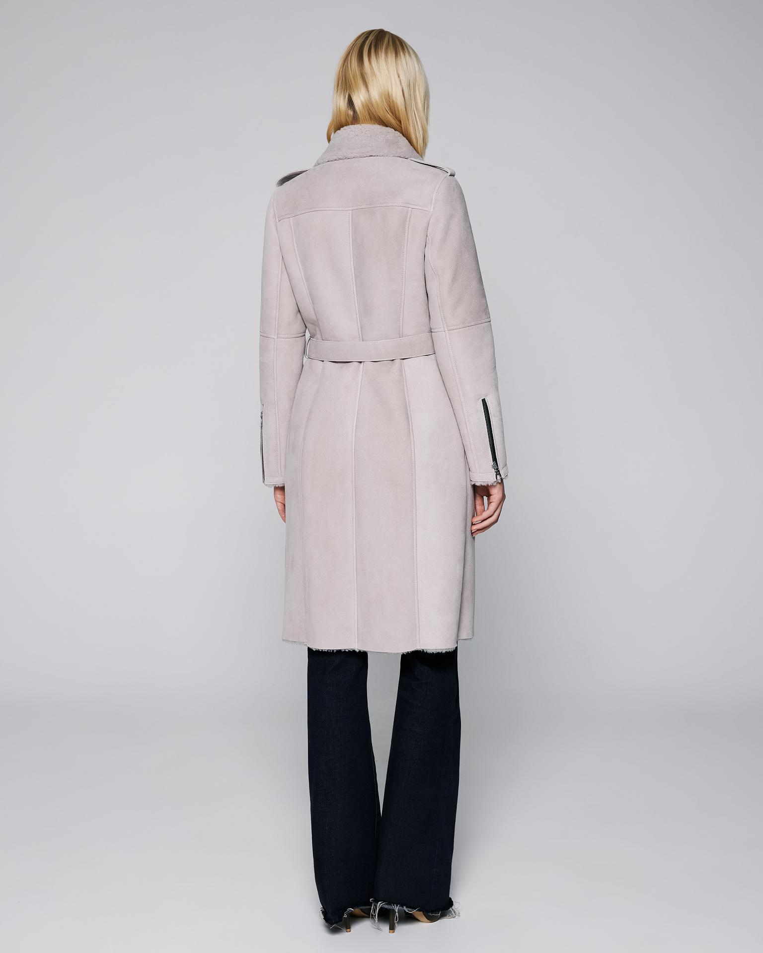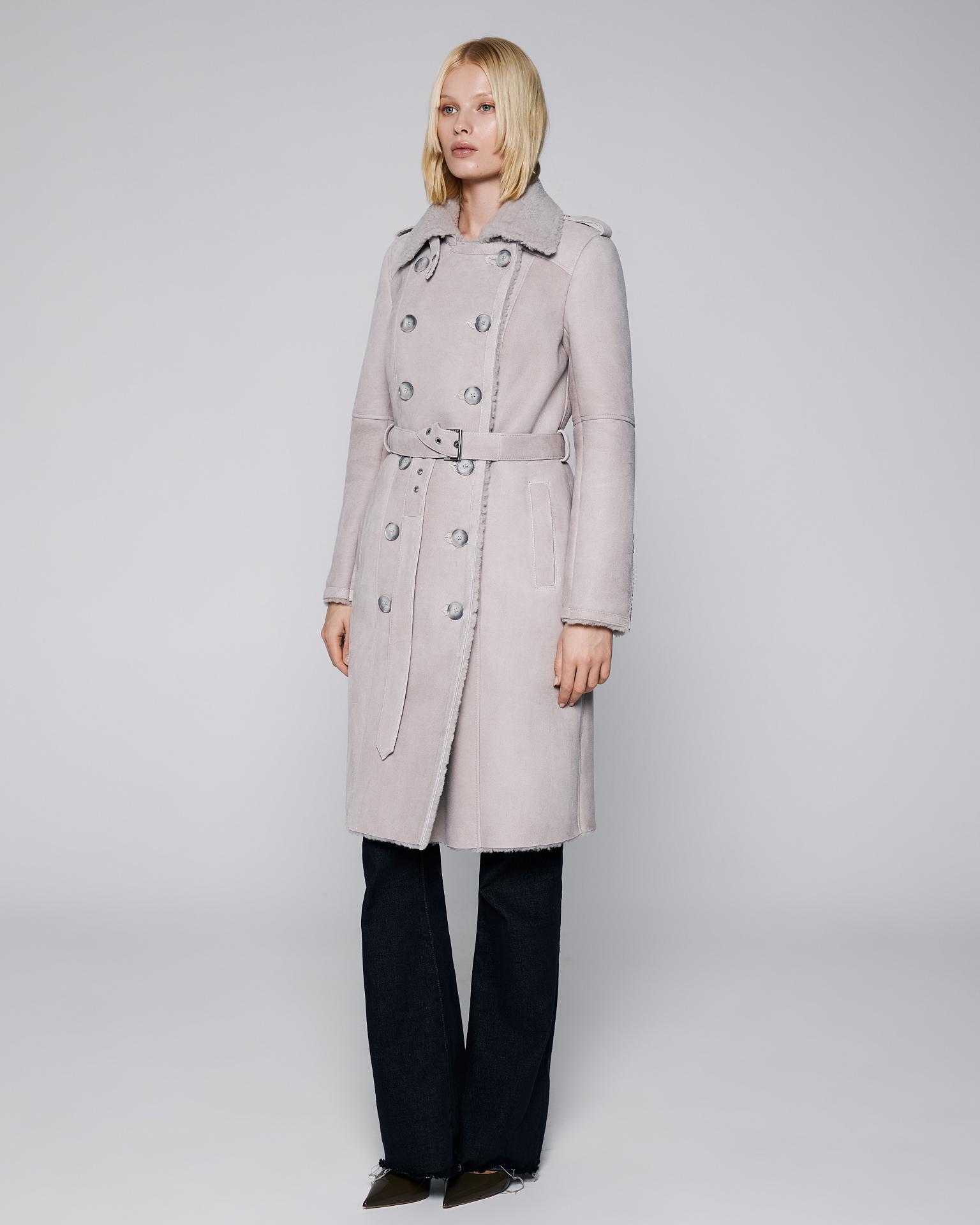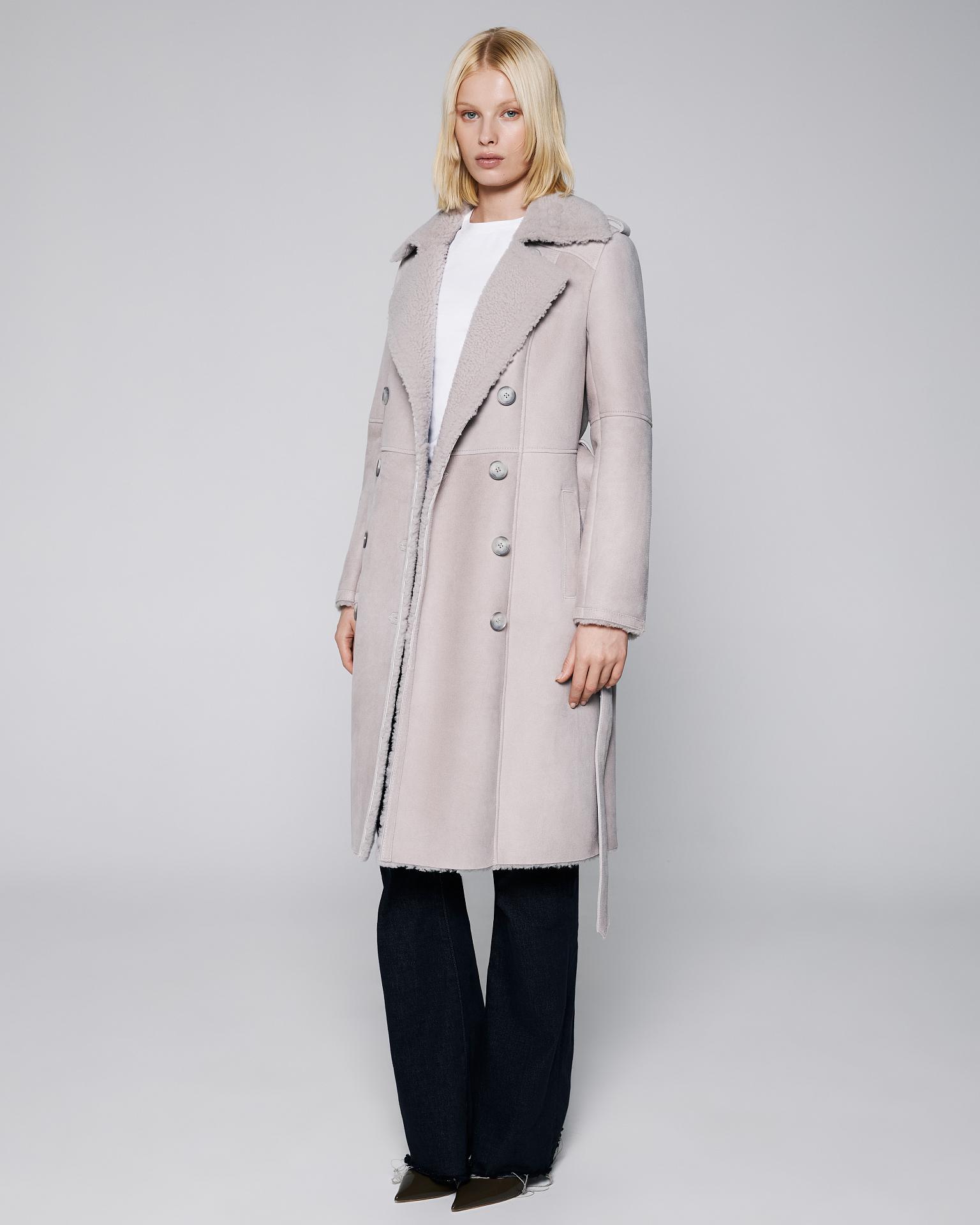 Женская дубленка из премиальной итальянской овчины породы Меринос. Удлиненная двубортная модель на пуговицах в тон. Ремень с металлической пряжкой. Молнии на манжетах рукавов. Боковые карманы. Длина изделия 108 см. Посадка классическая, удлиненная.