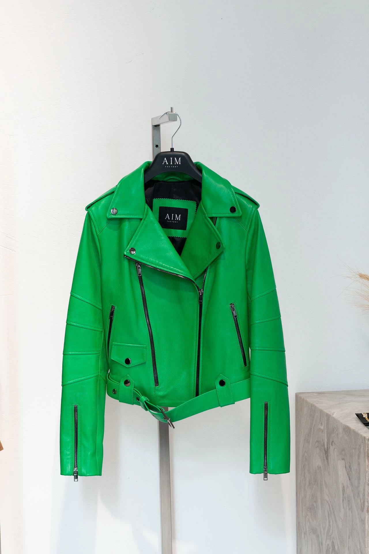Классическая женская байкерская куртка из гладкой итальянской кожи наппа. Асимметричная застежка-молния. Пояс с пряжкой. Манжеты рукавов с застежками-молниями. Длина изделия: 52 см. Посадка: классическая.