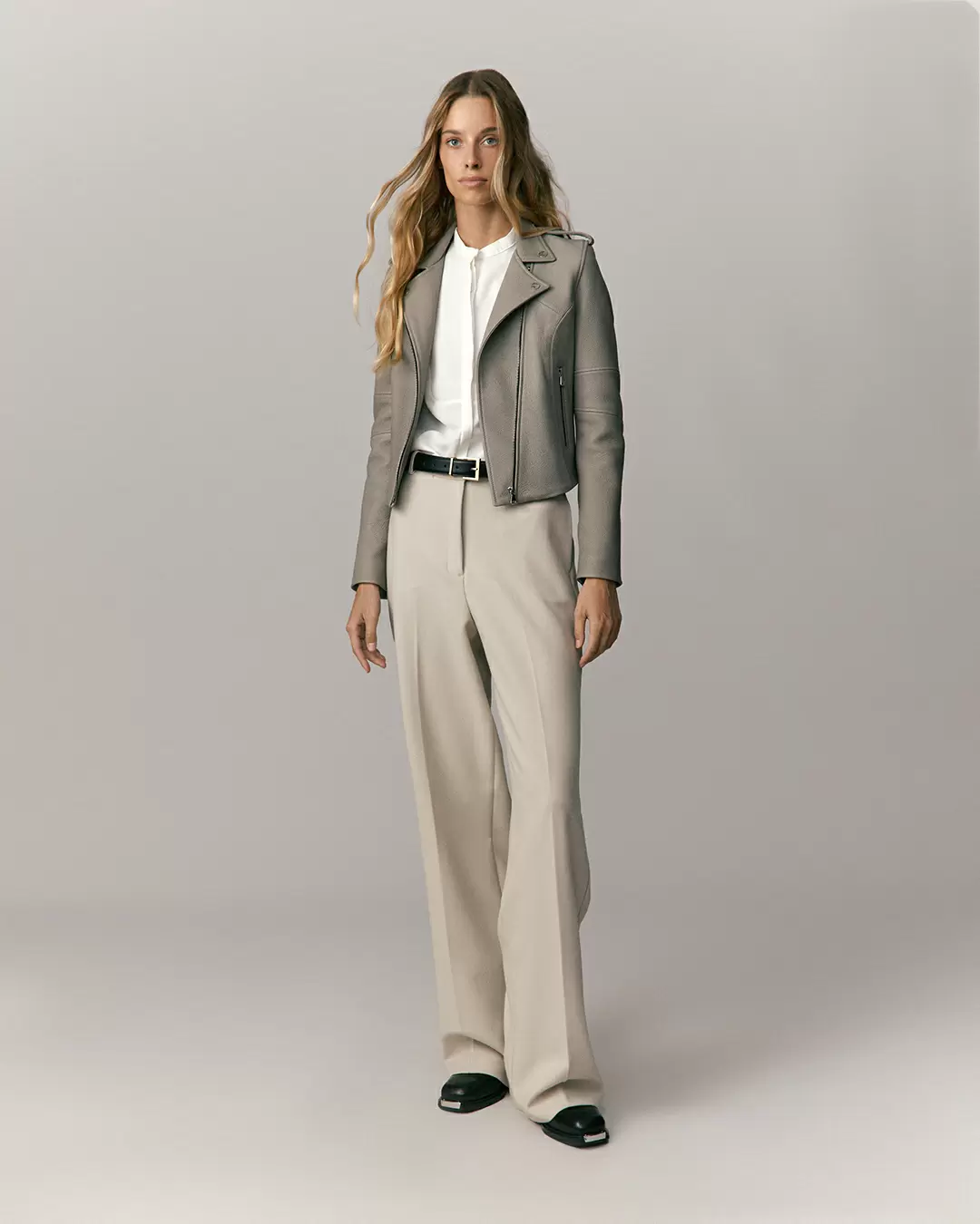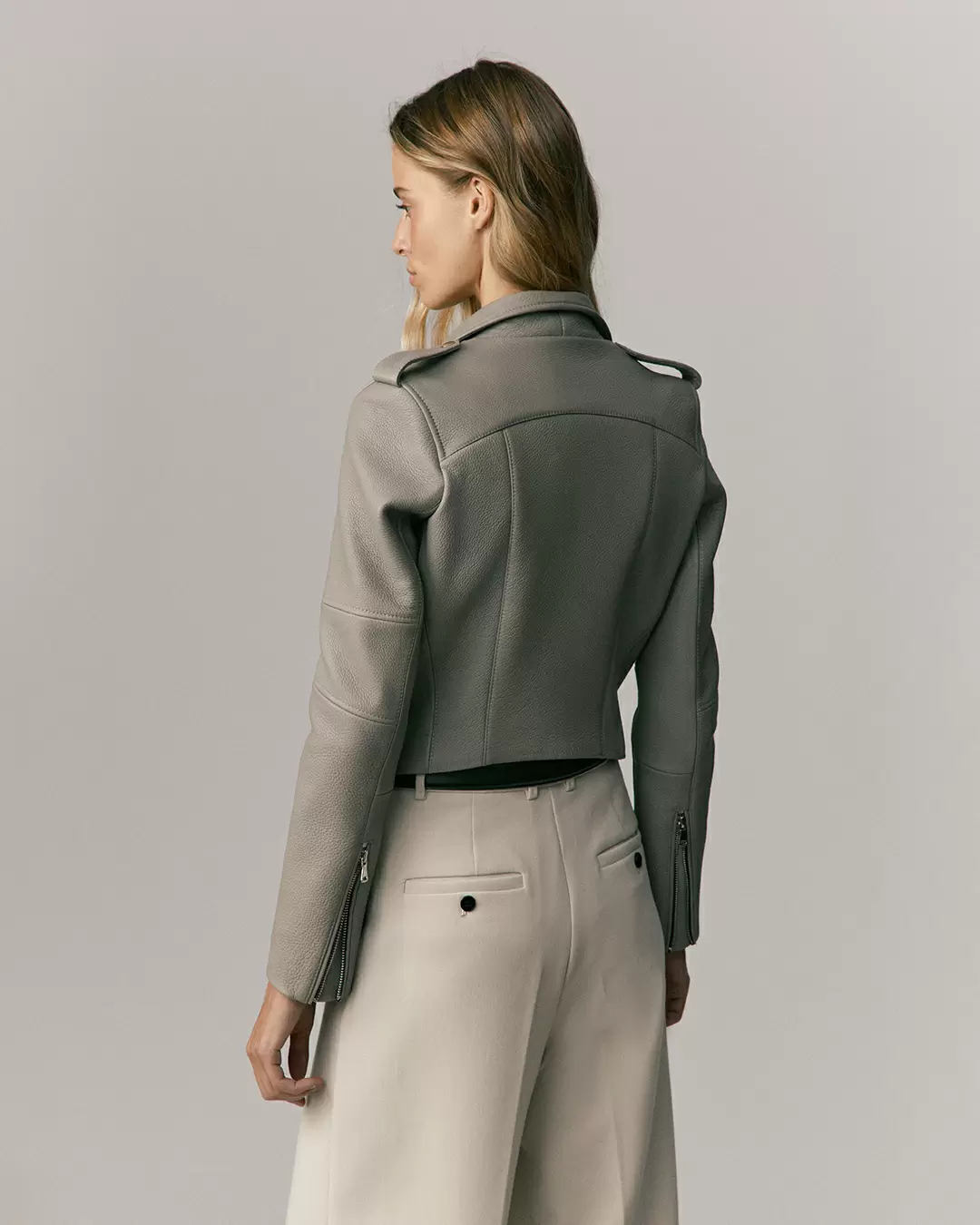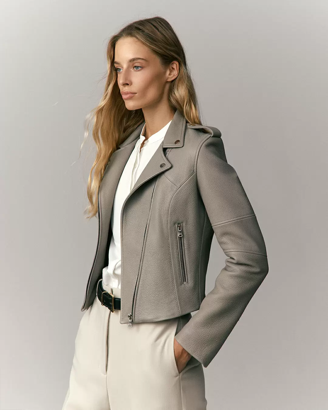 Классический женский жакет из фактурной кожи оленя премиум-сегмента. Асимметричная застежка-молния. Длина изделия: 52 см. Посадка: классическая.
